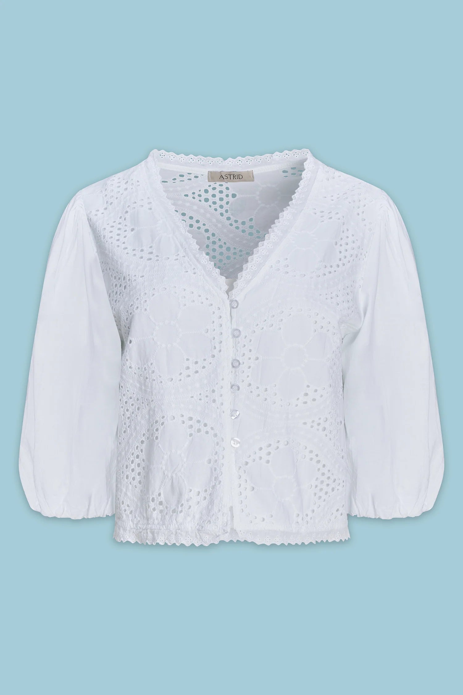A fresh, effortless staple for warm‑weather days, this Eyelet Top is a lightweight woven shirt designed for easy outfitting. Its clean silhouette and breathable fabric make it a versatile piece you can dress up or down—perfect for pairing with denim, skirts, or tailored trousers.