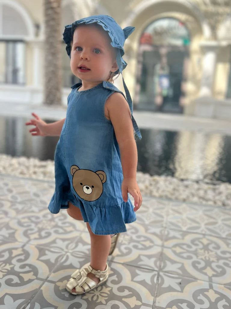 This Baby Girl Denim Dress with Bear Design Set is a cute and stylish outfit for your little one. It features a denim dress with an adorable bear design and comes with a matching accessory, like a hat or purse. Made from soft denim, it offers both comfort and durability for everyday wear. The playful bear motif makes it perfect for casual outings or special events.