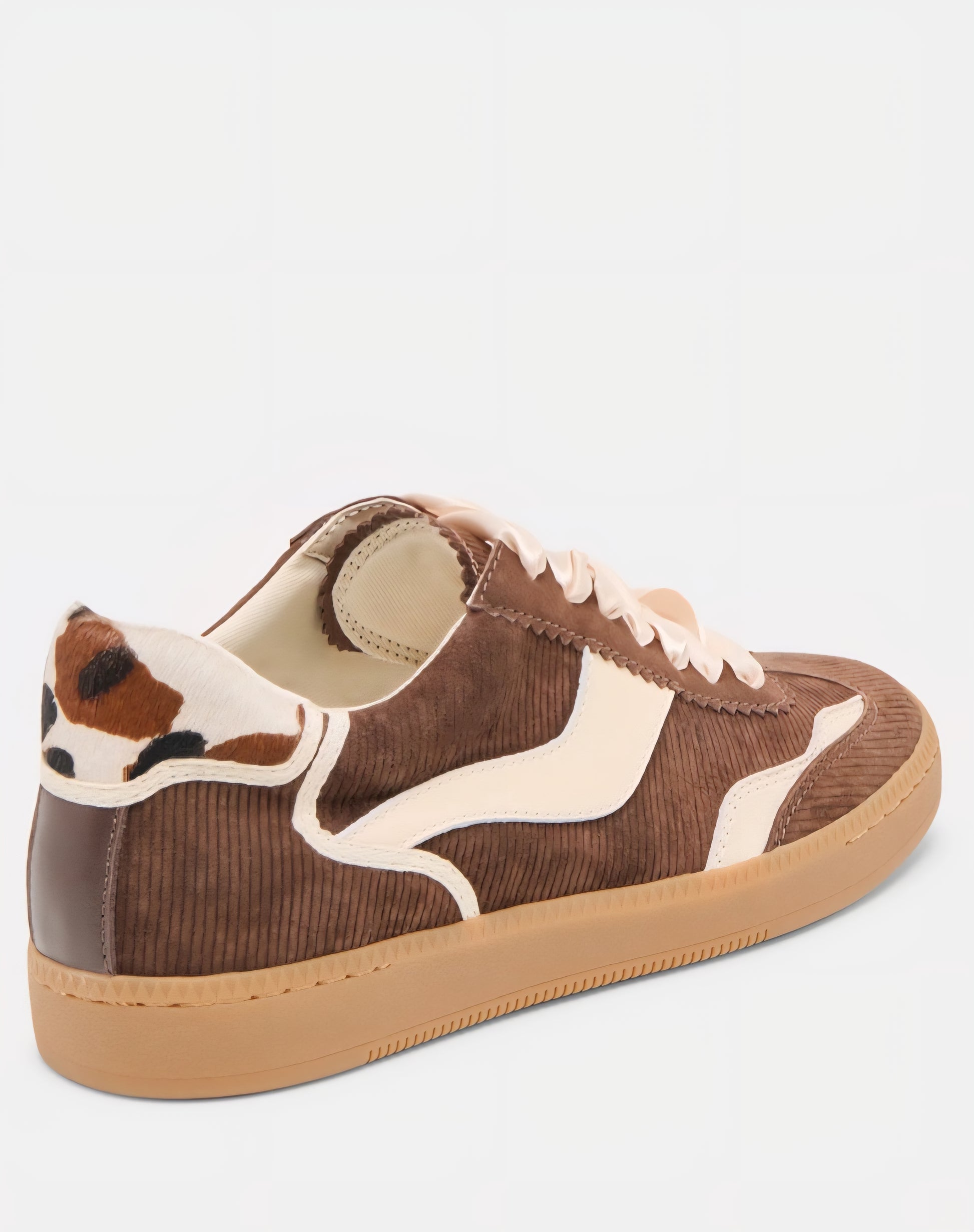 Such a cute sneaker! Corduroy ribbed detail mixed with leopard trim. This sneaker is edgy, elevated and so darn cute! Pair with your favorite slip dress, jeans and a T shirt, workout outfit,almost anything!