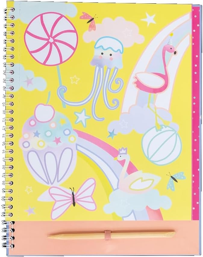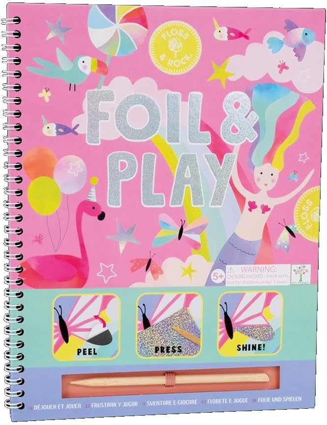 Add shimmer and shine to every page with 8 fun illustrated designs to decorate! Simply peel off a white sticker, choose a foil sheet, and rub it onto the sticker area with the wooden stylus to reveal a dazzling picture. These Foil & Play sets include 20 colourful foiling sheets, 8 illustrated pages, and a wooden stylus – all neatly presented in a handy spiral-bound book for hours of creative fun!
