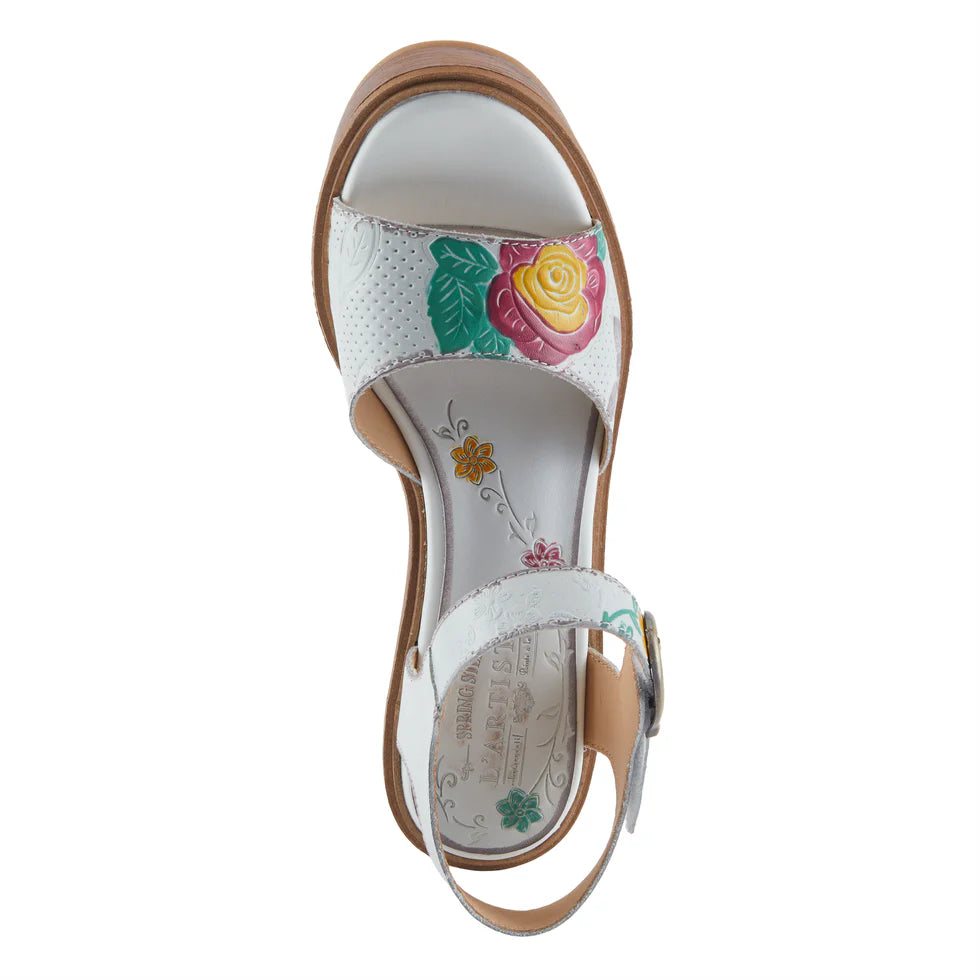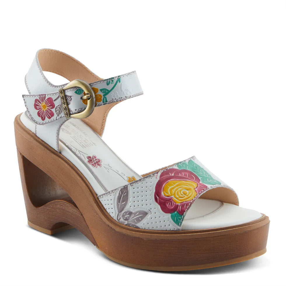 Step into style with these chic platform heels, a true masterpiece for your feet. Its hand-painted floral design brings a playful, artistic touch, while the architectural cutout heel adds a modern, fashion-forward edge that’s sure to attract attention. But these aren't just about looks — it’s built for comfort, featuring a lightweight demi-wedge and an adjustable ankle strap for all-day wear. Perfect for everything from running errands to a night out, this sandal elevates your style without sacrificing ease or support.