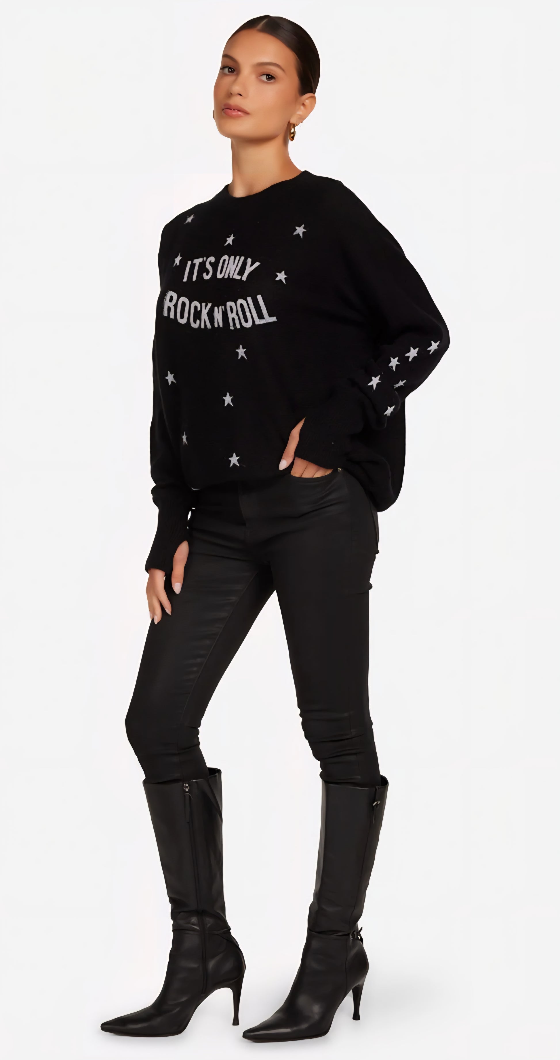 Edgy and luxurious, with a fun screen print, what more can you ask for in a Cashmere sweater this chilly season? Oversized style featuring thumbholes, you can pair this sexy leather leggings or a any skinny jeans. Rock it with sneakers or stilettos.