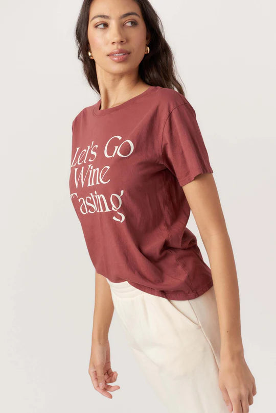 The Let’s Go Wine Tasting Tee brings easygoing comfort with a fun, spirited edge. Made from 100% cotton jersey in a rich Sugar Plum shade, it offers a relaxed silhouette with short sleeves and a classic crew neck. The standout front graphic adds a playful touch—ideal for casual days, weekend adventures, or your next winery visit.