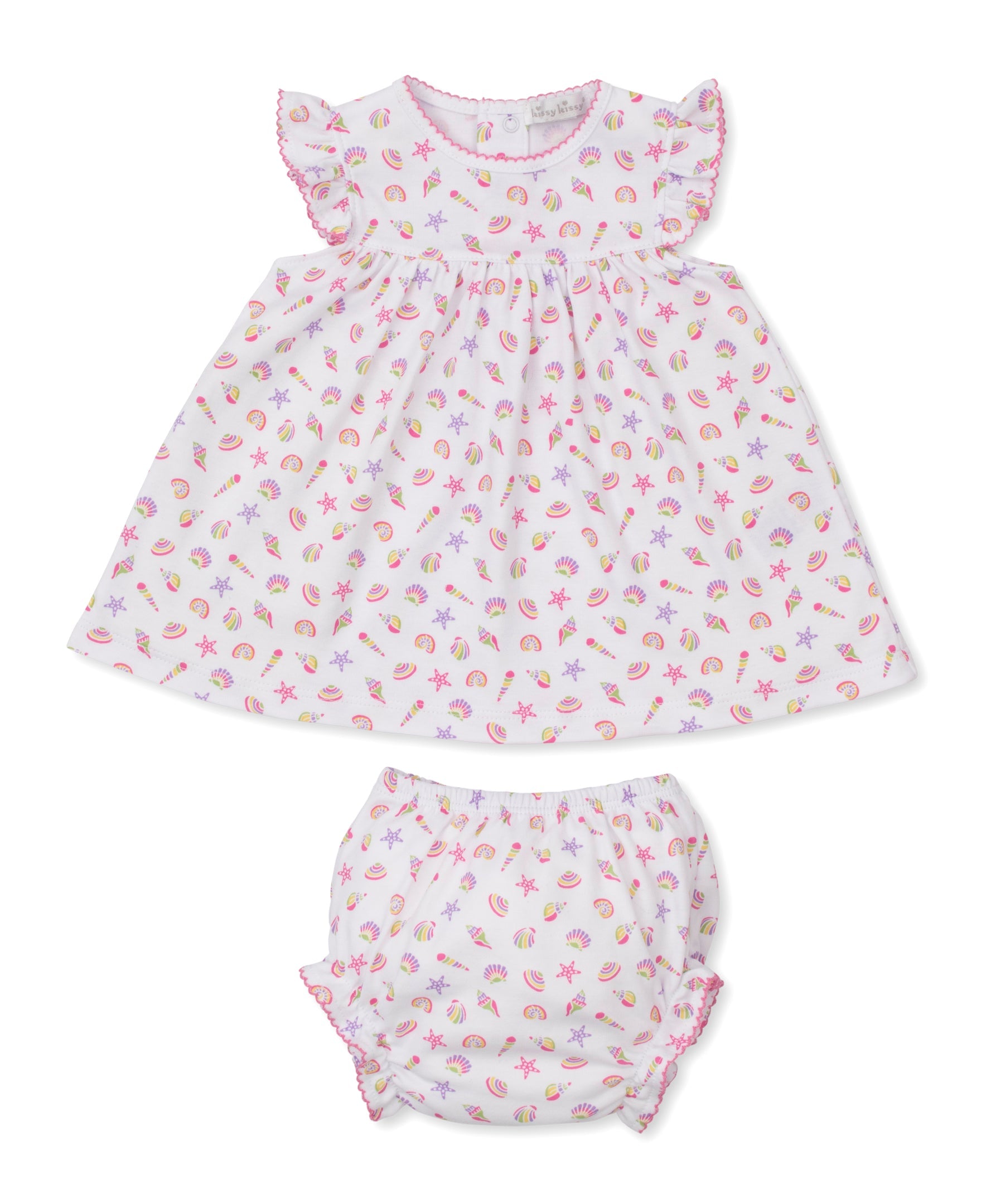 The Sea Shell Magic Dress Set is a delightful outfit made for both comfort and style. Made from 100% Pima cotton, it’s soft and breathable for your baby’s sensitive skin. The set includes a white dress with vibrant seashell and starfish prints, paired with a matching diaper cover. With ruffled sleeves and a snap-back closure, it’s easy to put on and perfect for your little one’s wardrobe.